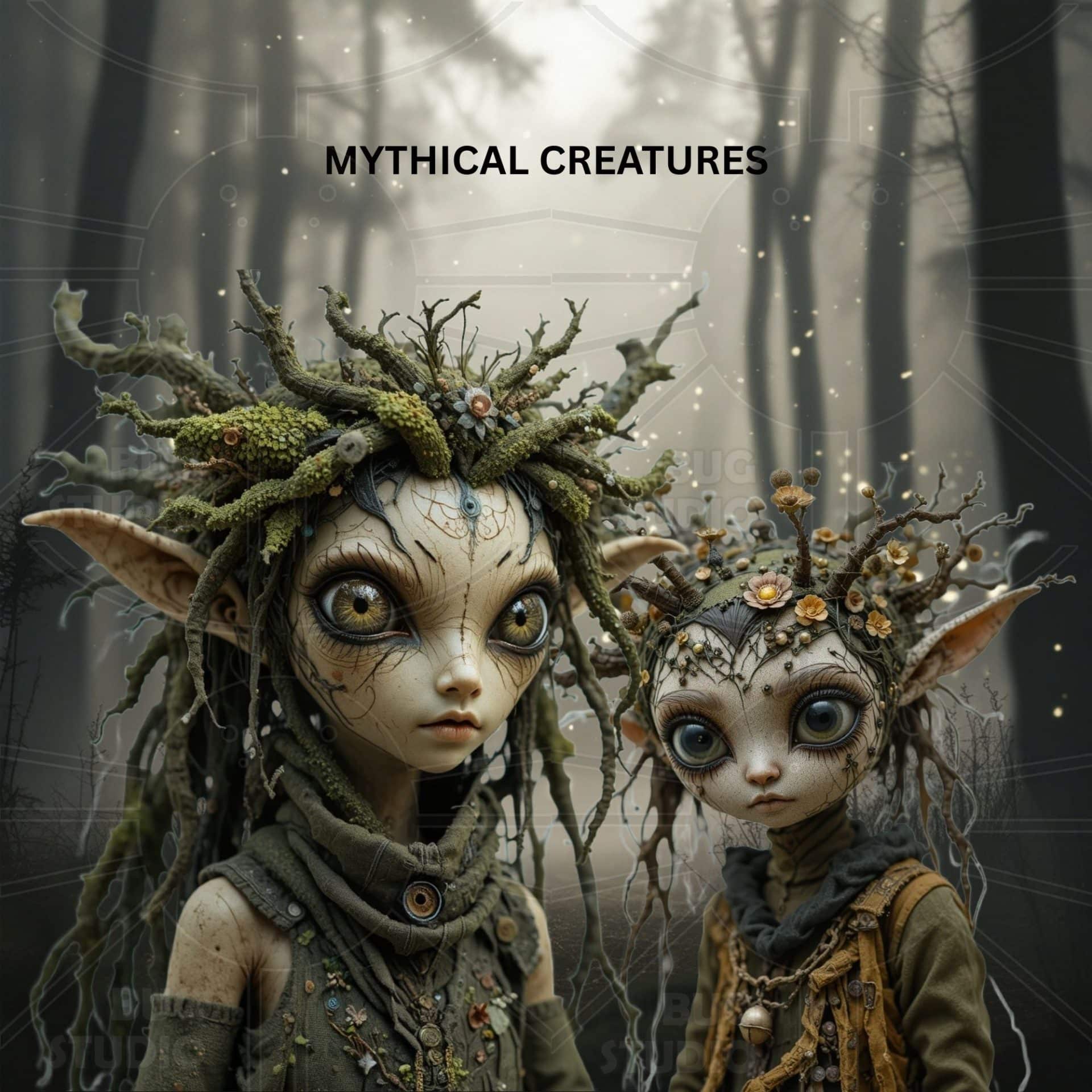 This collection features 44 unique forest spirit characters inspired by folklore, dark fantasy, and mythical woodland creatures. Each spirit is carefully designed with a poetic, handcrafted aesthetic — blending organic forms, fabric-like textures, and expressive details to create a living fantasy world.
